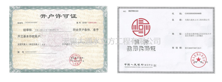 无锡大通水立方有限公司资质证明